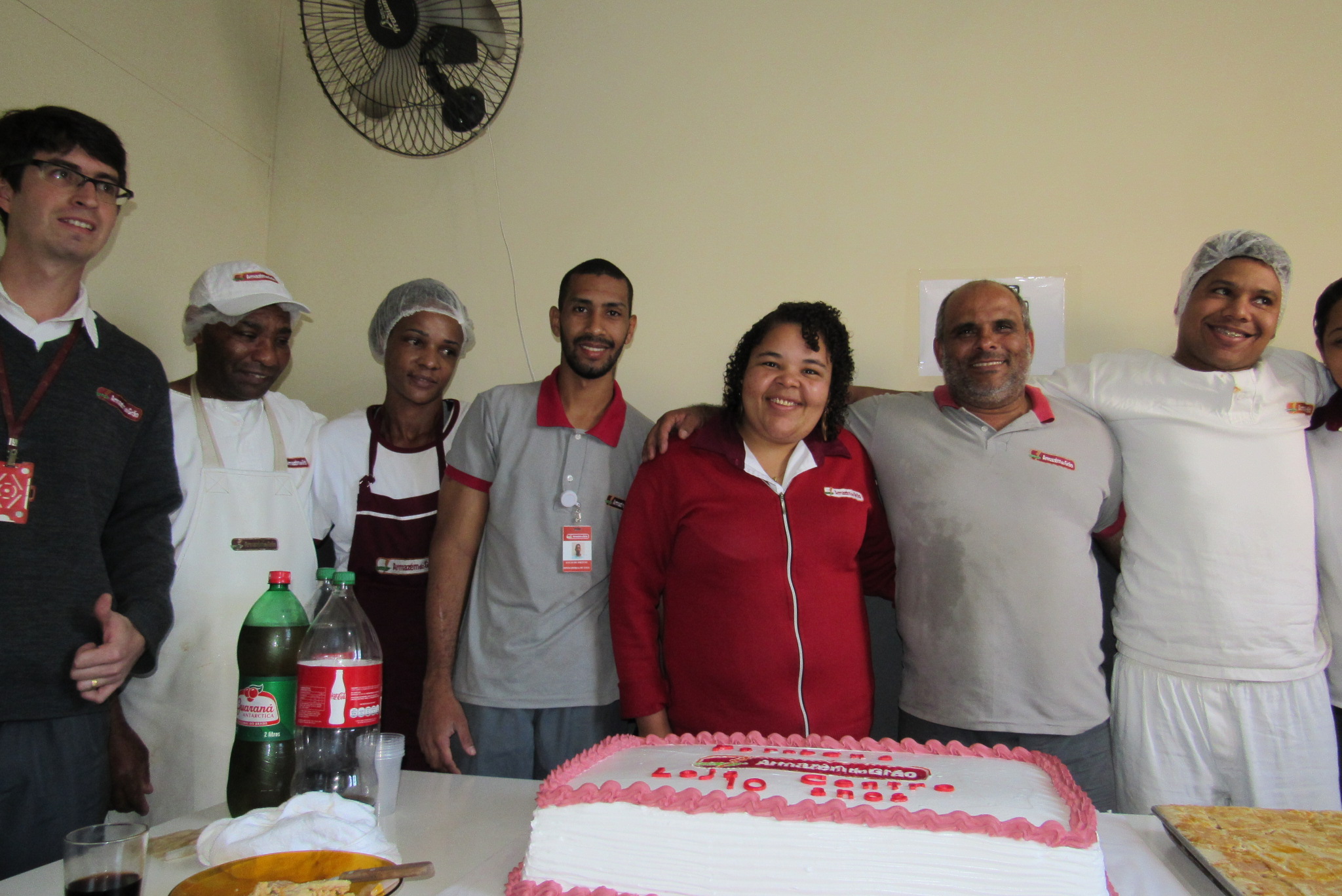 Outro que estava empolgado com as comemorações era o trainee gerencial (subgerente), Paulo Fernandes Vasconcelos Junior, que começou em 2006 na loja do bairro Castrioto, passou por várias lojas da rede, e há cinco anos atua na loja Centro. “Comecei como repositor, fui conferente, supervisor de loja e hoje cheguei a trainee gerencial. Fico muito contente em fazer parte dessa grande família Armazém do Grão”, declarou emocionado, logo após cortar o bolo de aniversário da loja.