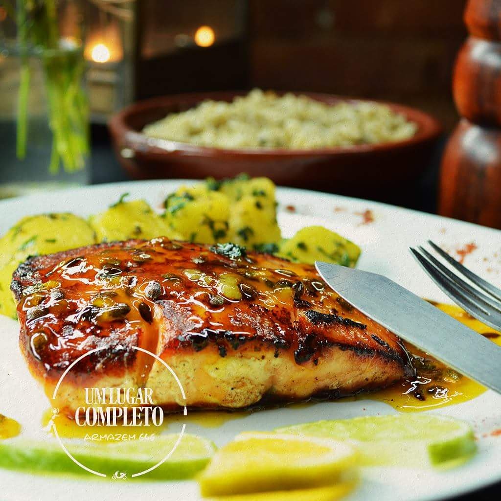 – Salmão com crosta de gergelim