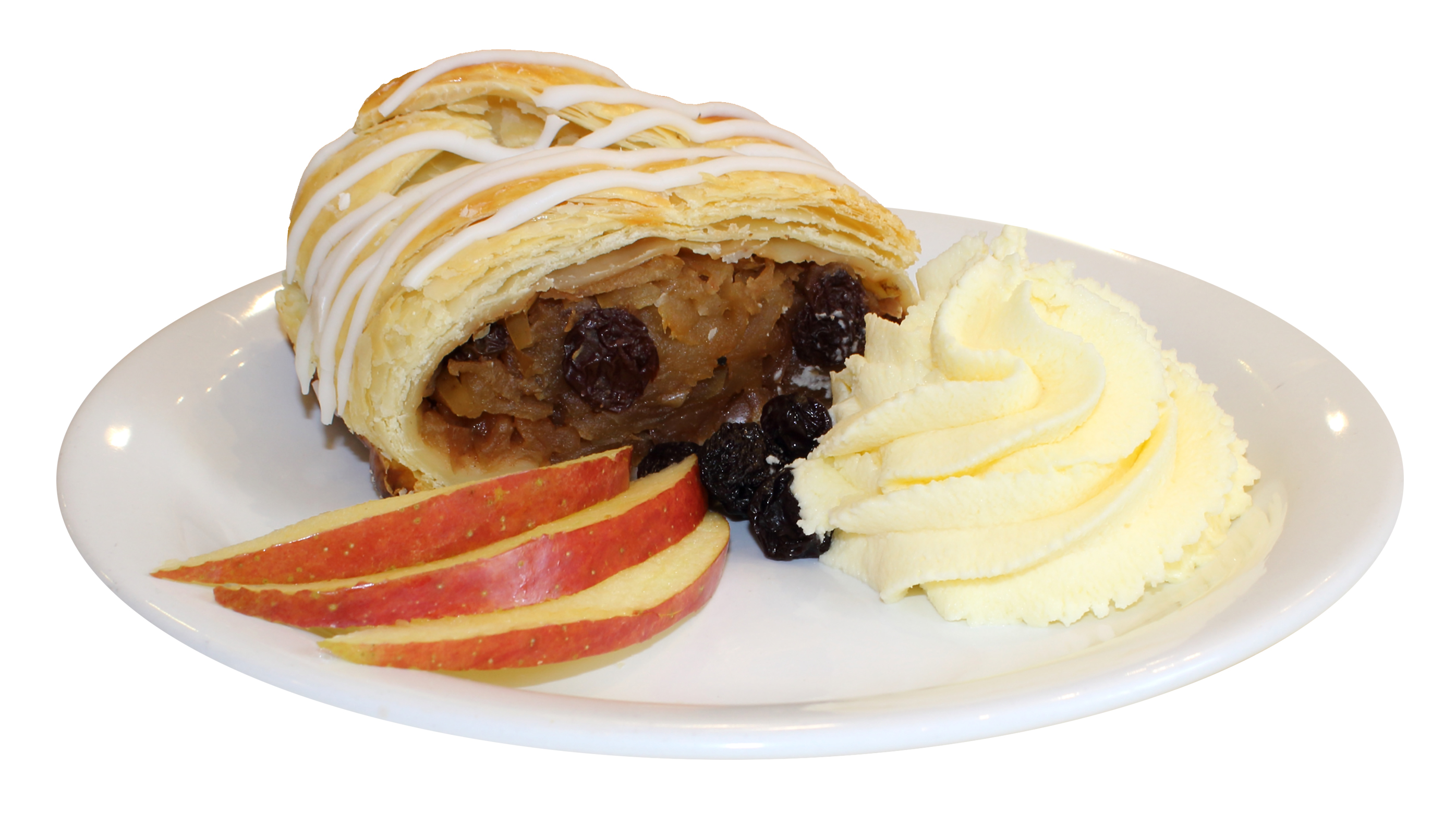 – Apfelstrudel (Strudel de Maçã) acompanhado de chantilly.